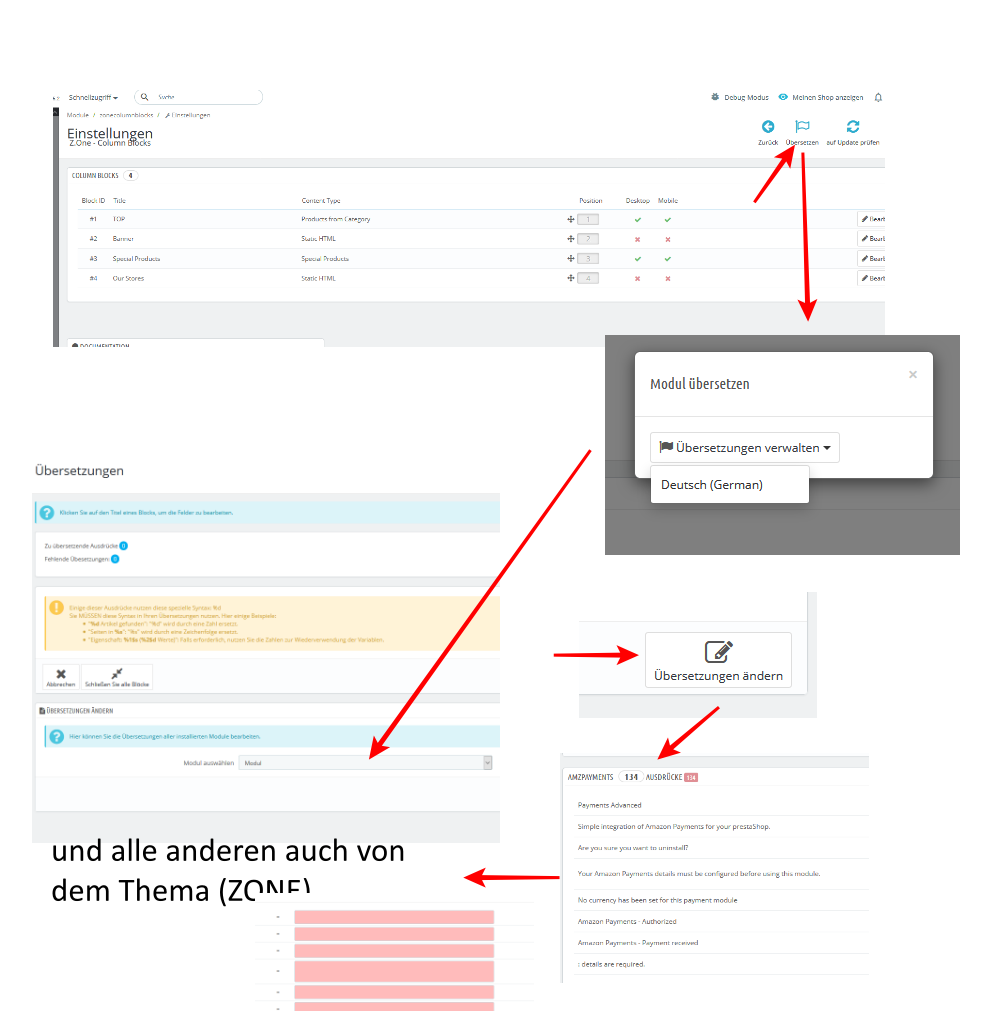 AMSPO24-Online Posted February 19, 2020 Author Share Posted February 19, 2020 "Nachzu alle" bedeutet, dass unter "Übersetzungen" nicht auf Deutsch umgesetzt werden können. Man tippt die Übersetzungen auf Deutsch ein, speichert diese, und die in Deutsch eingegebenen Übersetzungen sind wieder weg. Bei einigen funktioniert es auch. Wo bekomme ich die alle Dateiattribute für Prestashop 1.7.6.x her? Link to comment Share on other sites More sharing options...