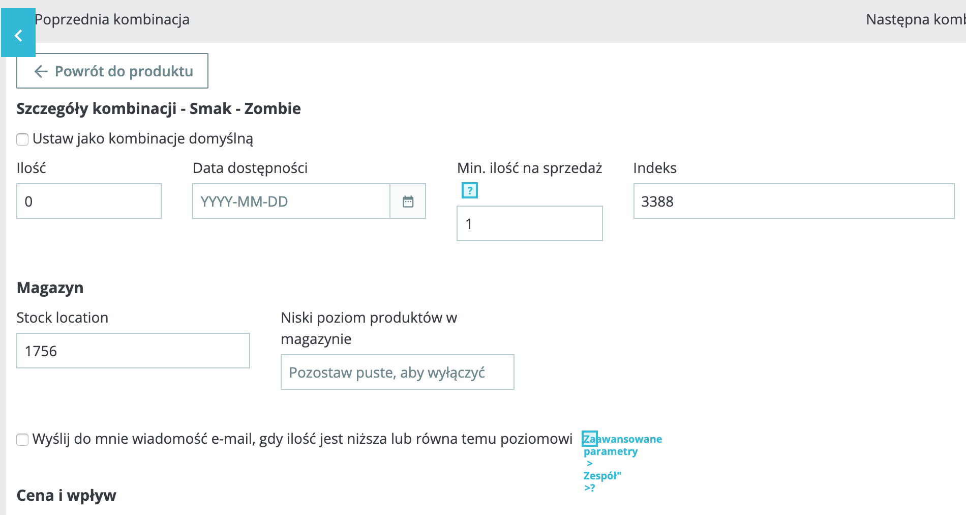 Czy wiecie może jak skonfigurować to prawidłowo, żeby stan z magazynu przenosił się do kombinacji produktu?