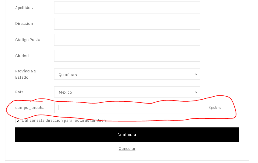PAKORTIZ Posted February 24, 2020 Share Posted February 24, 2020 (edited) Que tal amigos, tengo un asunto, para agregar un campo en la parte de direcciones ... vi un tutortial en internet http://nemops.com/new-customer-address-fields-prestashop/#.XlRBGyhKjIX y todo va muy bien hasta buscar el front de las direcciones para agregar el campo, alguien puede darme un dato de donde debo modificar esto {if $field_name eq 'vat_number'} <div id="vat_area"> <div id="vat_number"> <div class="form-group"> <label for="vat-number">{l s='VAT number'}</label> <input type="text" class="form-control validate" data-validate="{$address_validation.$field_name.validate}" id="vat-number" name="vat_number" value="{if isset($smarty.post.vat_number)}{$smarty.post.vat_number}{else}{if isset($address->vat_number)}{$address->vat_number|escape:'html':'UTF-8'}{/if}{/if}" /> </div> </div> </div> {/if} ... {if $field_name eq 'my_custom_field'} <div id="vat_area"> <div id="my_custom_field"> <div class="form-group"> <label for="my-custom-field">{l s='My Custom Field'}</label> <input type="text" class="form-control validate" data-validate="{$address_validation.$field_name.validate}" id="my-custom-field" name="my_custom_field" value="{if isset($smarty.post.my_custom_field)}{$smarty.post.my_custom_field}{else}{if isset($address->my_custom_field)}{$address->my_custom_field|escape:'html':'UTF-8'}{/if}{/if}" /> </div> </div> </div> {/if} Edited February 26, 2020 by PAKORTIZ (see edit history) Link to comment Share on other sites More sharing options...