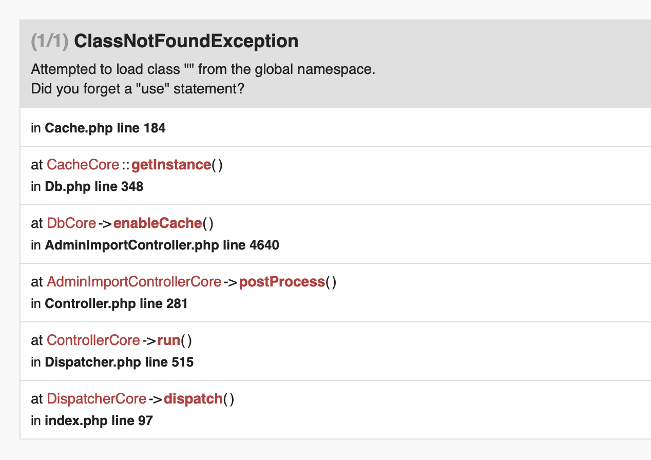 ich kann leider aktuell keinen Artikelimport mehr über die Importfunktion vornehmen und erhalten folgende Fehlermeldung (siehe Anhang). Ich habe bereits probiert testweise eine alte CSV Datei oder die Beispieldatei zu importieren. Die PHP-Version hatte ich testweise auch zurück auf 7.1 gestellt. Die Datei wird zwar ins Verzeichnis auf dem FTP geladen nachdem ich auf "nächster Schritt" gegangen bin, aber erhalte im Anschluss nur einen Whitescreen bzw. über den Debug-Modus die Fehlermeldung. Hier im Forum bin ich nur auf einen französischen Post mit gleicher Fehlermeldung gestoßen, allerdings ohne einen Lösungsansatz.