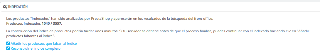 cifu17 Posted April 12, 2020 Author Share Posted April 12, 2020 On 4/10/2020 at 8:19 PM, Prescol said: Si fuera memoria o tiempo te aparecería el error. Solo se me ocurre que alguna categoría esté desactivada, o haya una caché a nivel de base de datos, pero aun así es raro. No es problema de memoria, he probado a localizar un producto no indexado y si lo cambio de categoria principal por otra automaticamente se indexa, no entiendo y si hay una solucion para hacer esto recurrente porque si no me da algo. En cuanto vuelvo a recostruir el indice me lo desindexa Link to comment Share on other sites More sharing options...