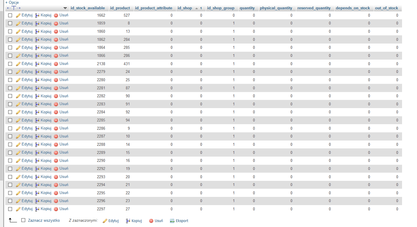 Witam, otóż chcę zamienić w tabeli ps_stock_available kolumne id_shopna wartosc 3. Mam query  UPDATE `ps_stock_available` SET id_shop=3 ; które powinno teoretycznie działać, bo symulacja przechodzi poporawnie, ale jak dam wykonaj to otrzymuję  komunikat:
