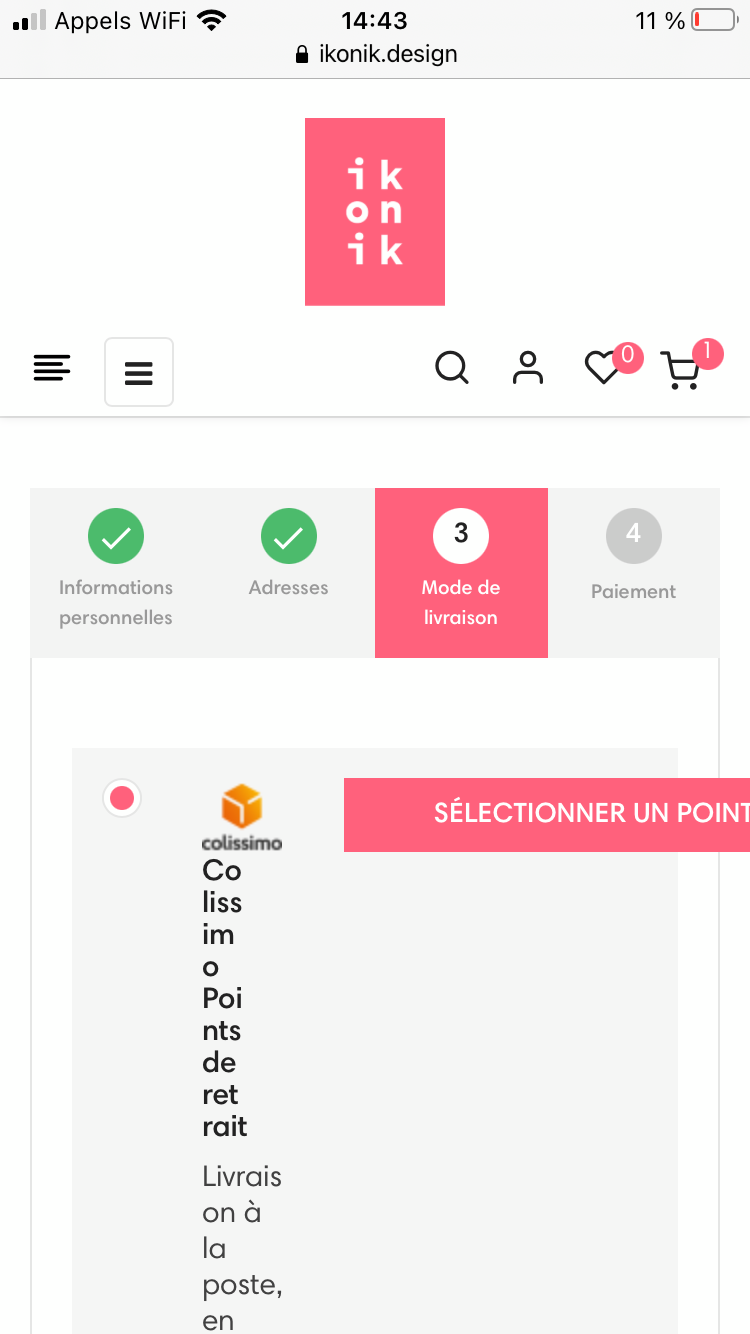 Steven S Posted March 9, 2020 Share Posted March 9, 2020 (edited) Bonjour à tous, J'utilise le module de livraison Colissimo - Officiel et je rencontre un souci sur l'affichage des points de retrait dans mon tunnel de commande. Lorsque je sélectionne ce mode de livraison à l'étape "Mode de livraison" du tunnel de commande, le bouton "Sélectionner un point de retrait" ne s'affiche pas du premier coup. Pour que le bouton s'affiche je dois forcer la validation en appuyant sur le bouton "Continuer", à ce moment là comme aucun point de retrait n'a pu être sélectionné un message d’erreur bloque le passage au paiement, et le bouton pour choisir son p.d.r s'affiche enfin. Sans forcer le passage au paiement le bouton n'apparaît pas. Est-ce que l'un d'entre vous a déjà été confronté à ce souci ? Merci par avance pour votre aide & bonne journée,, Steven Version de Prestashop utilisée : 1.7.6.1 Edited May 15, 2020 by Steven S (see edit history) Link to comment Share on other sites More sharing options...