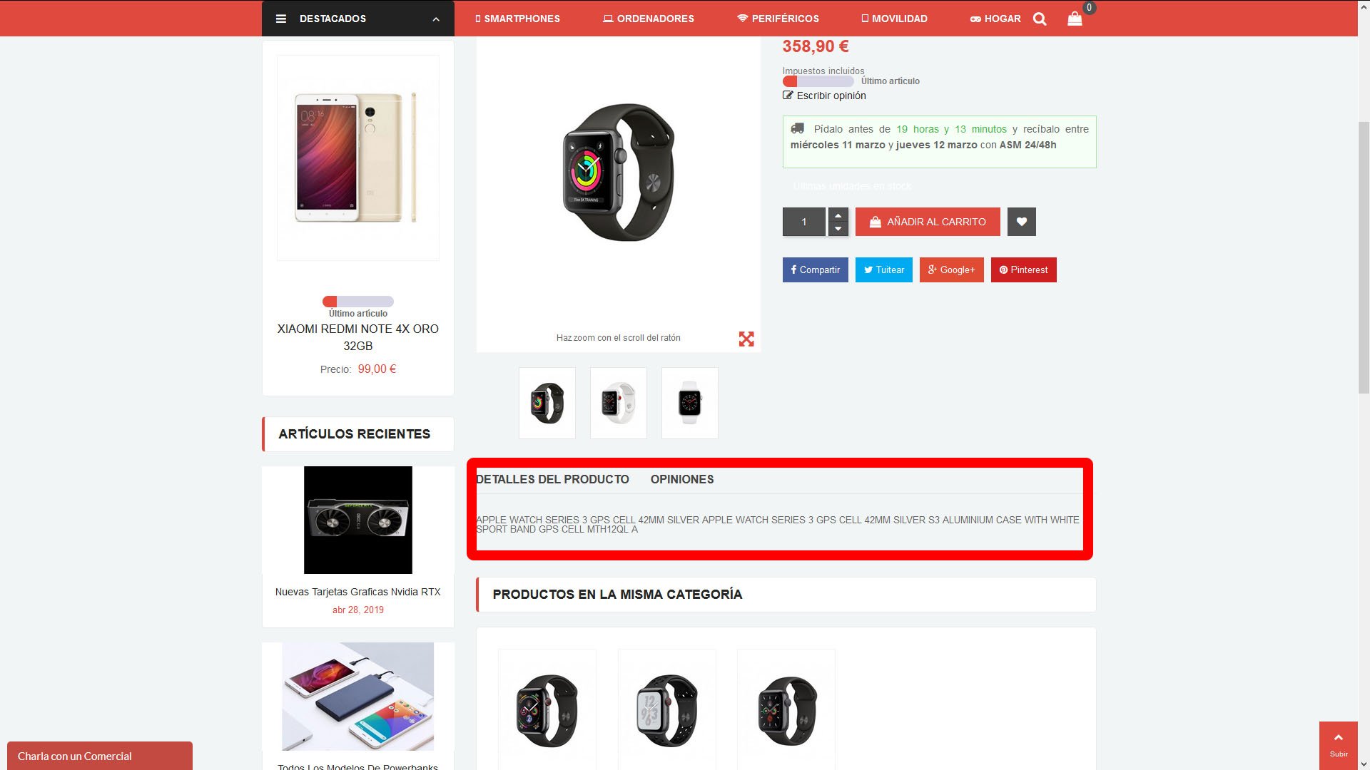 A continuación aparece el código de la pestaña  “Detalles del producto”, la cual vamos a activar: