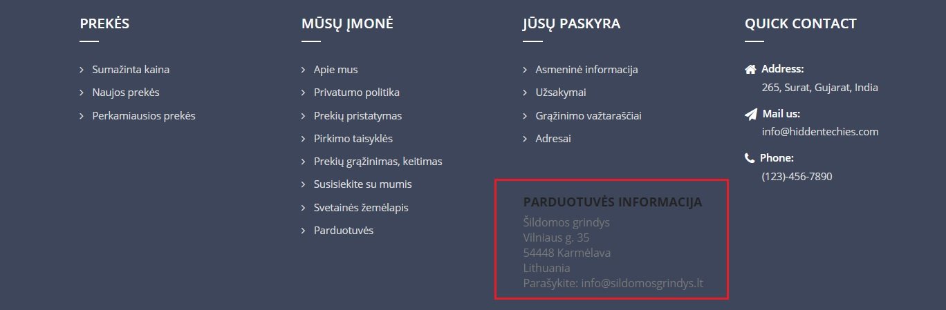 I can't find where I can edit the contact information in the footer. I am using prestashop 1.7.