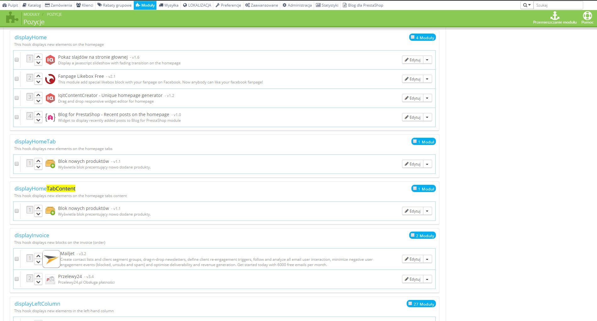 Jeżeli to w czymś pomoże to w załączniku jest wygląd pod "edycja na żywo" w pozycjach modułów.