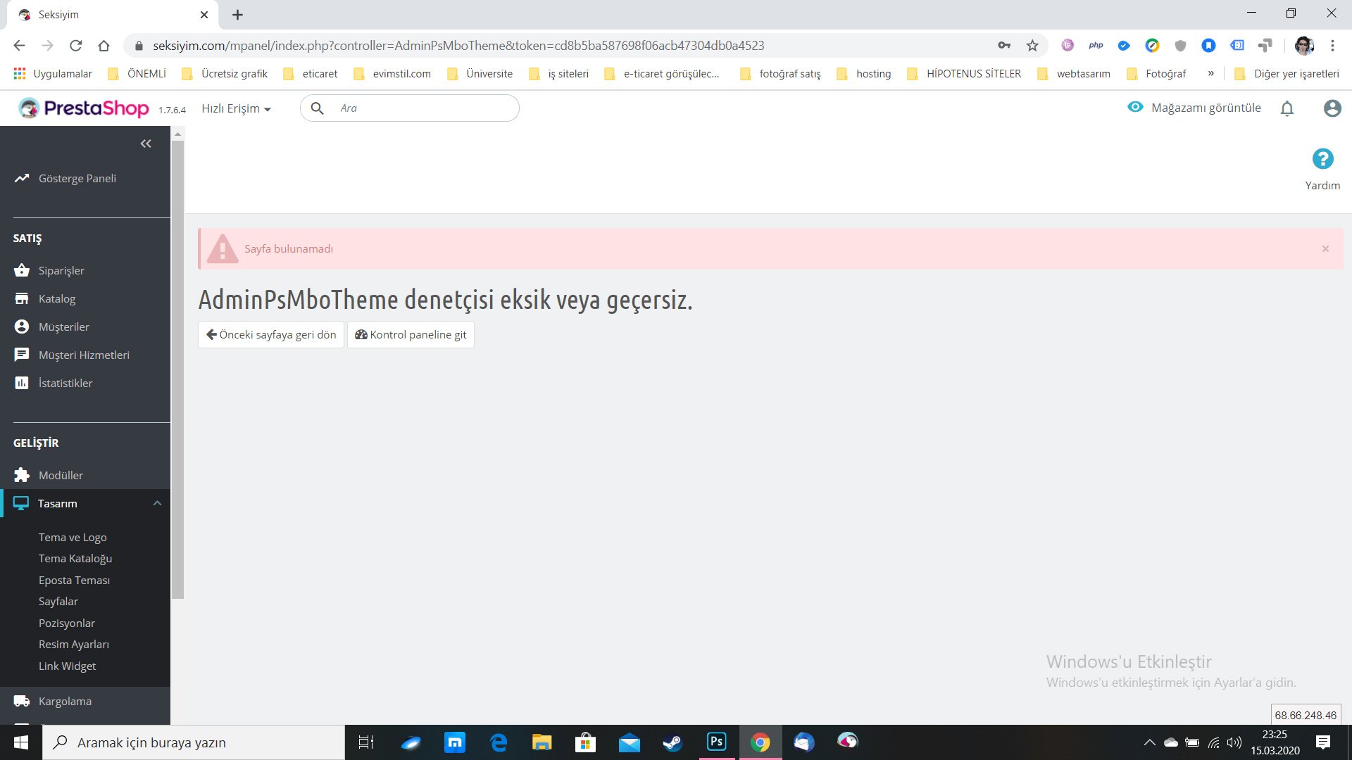 SahinSOLMAZ Posted March 19, 2020 Share Posted March 19, 2020 On 3/15/2020 at 11:56 PM, pardushan said: Arkadaşlar merhaba, Modül katoloğuna tıkladığımda "AdminPsMboModule denetçisi eksik veya geçersiz." Tema kataloğuna tıkladığımda "AdminPsMboTheme denetçisi eksik veya geçersiz." Merchant Expertise tıkladığımda "AdminGamification denetçisi eksik veya geçersiz." Hataları alıyorum. Bu durum aldığım serverda tüm softaclous kurulumlarında oluyor. Bir çözümü var mı? Hosttan mı kaynaklanıyor bilemedim. Merhabalar, Yeni bir kurulum ya da güncelleme mi yaptınız? Öyle ise bu işlem sonucunda hata aldınız mı controller'ların eksik olması, genellikle dosyaların eksik yüklenmesinden kaynaklanır. Kullandığınız tam PS versiyonu ve sunucu altyapısı nedir, (PHP - Apache versiyonu vs.)? Link to comment Share on other sites More sharing options...
