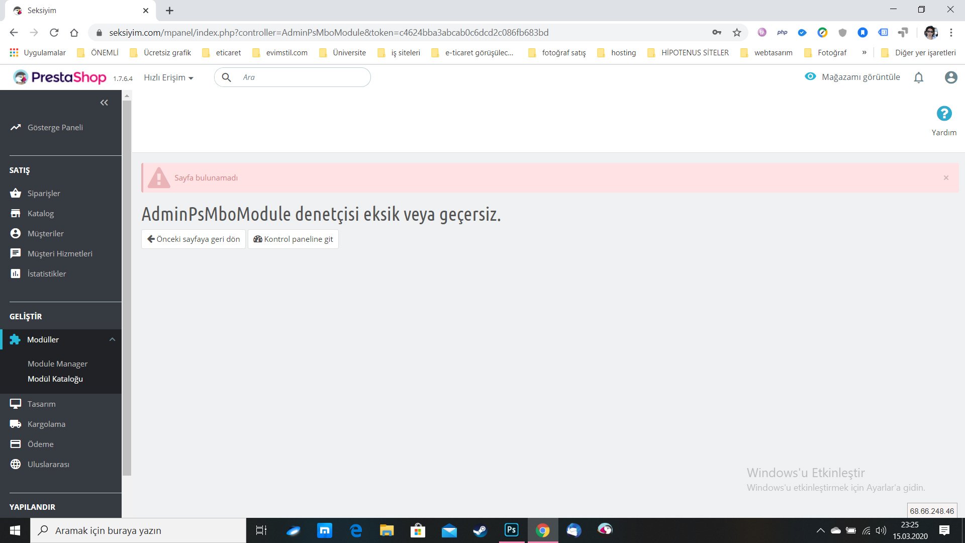 pardushan Posted March 15, 2020 Share Posted March 15, 2020 Arkadaşlar merhaba, Modül katoloğuna tıkladığımda "AdminPsMboModule denetçisi eksik veya geçersiz." Tema kataloğuna tıkladığımda "AdminPsMboTheme denetçisi eksik veya geçersiz." Merchant Expertise tıkladığımda "AdminGamification denetçisi eksik veya geçersiz." Hataları alıyorum. Bu durum aldığım serverda tüm softaclous kurulumlarında oluyor. Bir çözümü var mı? Hosttan mı kaynaklanıyor bilemedim. Link to comment Share on other sites More sharing options...