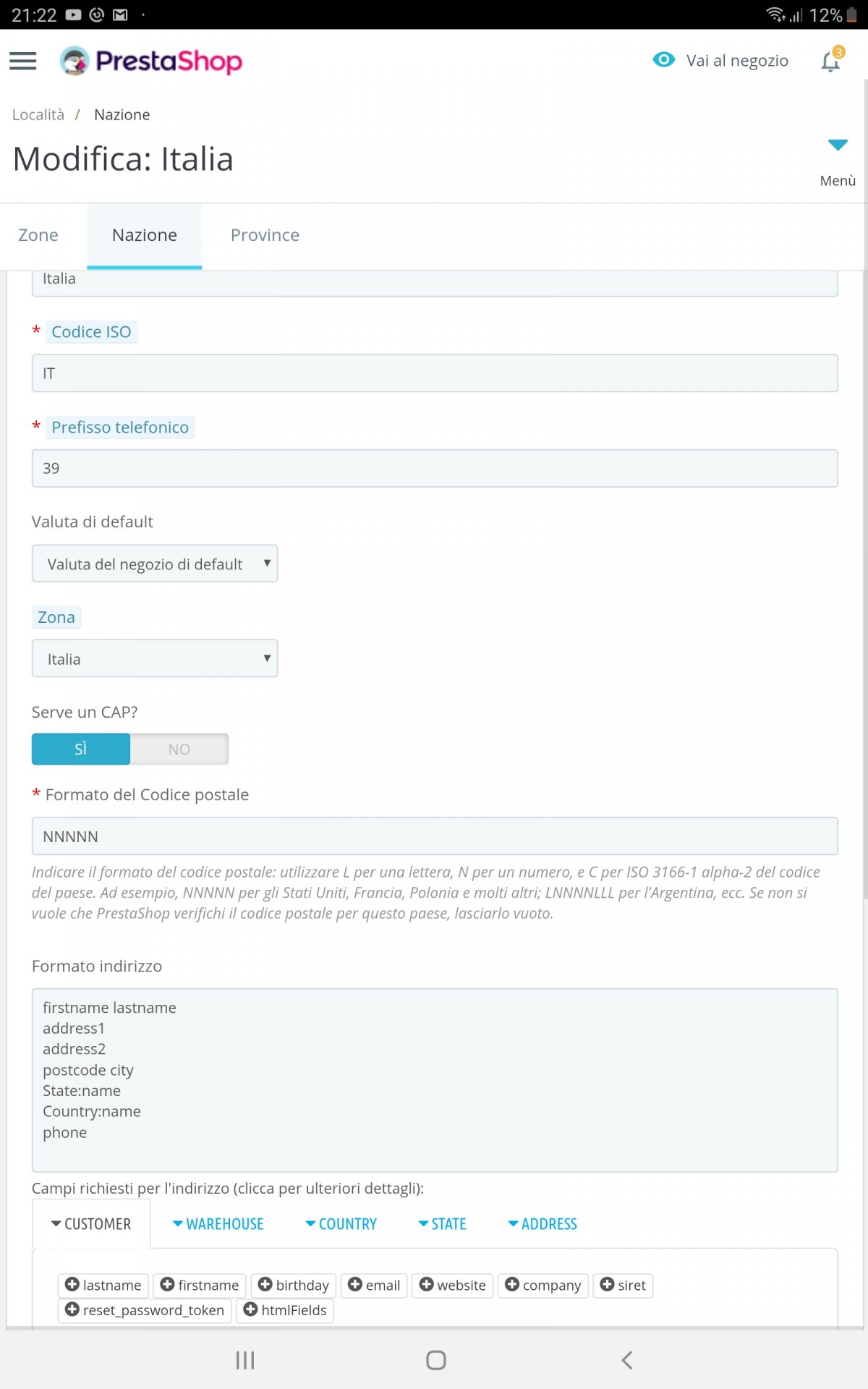 - nel fomato indirizzo non vi siano i campi dni e company (nel caso cancellare e poi cliccare il tasto Usare il mio layout corrente modificato)