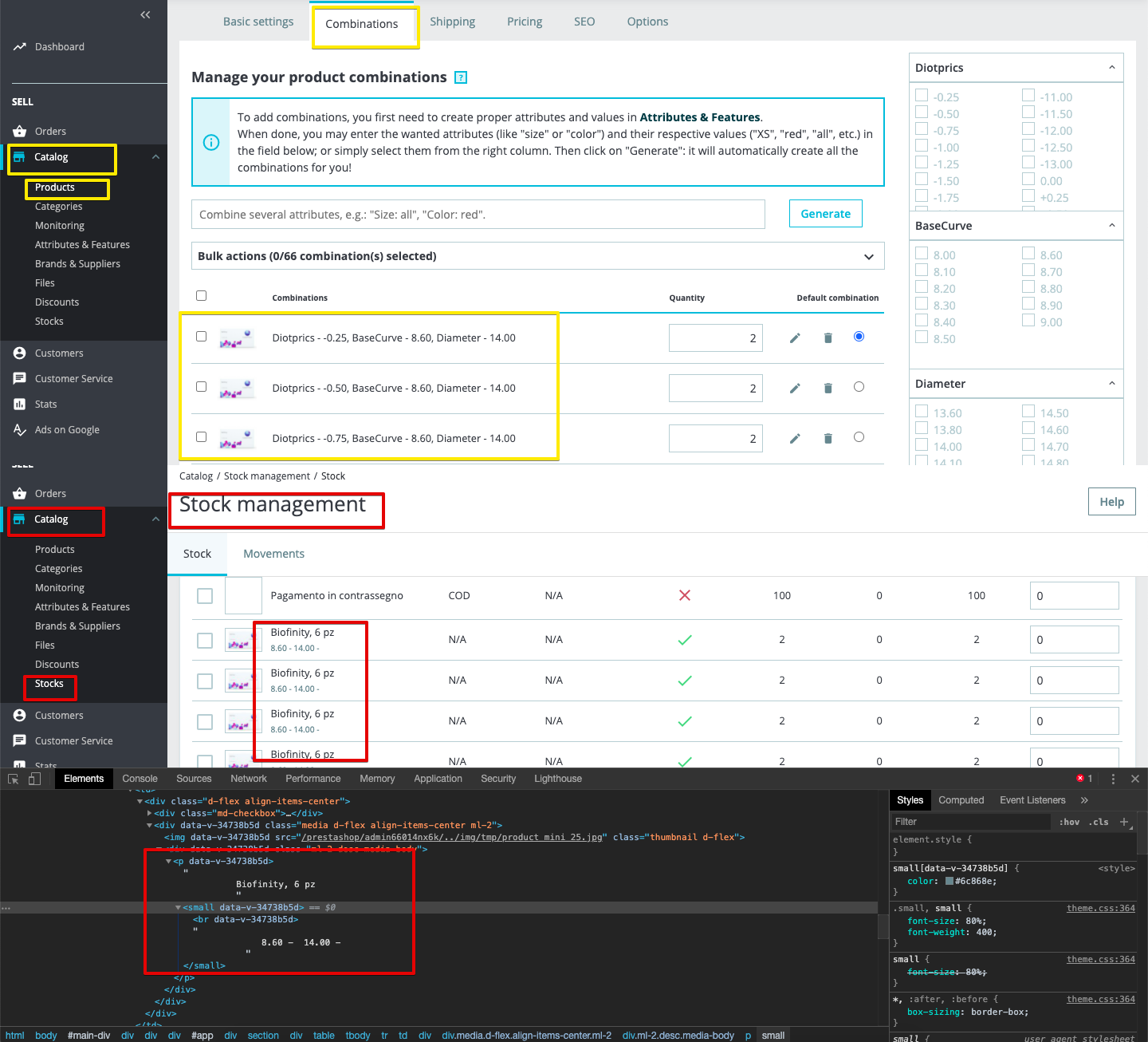 lenti Posted March 17, 2020 Share Posted March 17, 2020 Hi guys, I am quite new to PS some I am looking for a suggestion on where I can solve this issue. I have products with combinations as you can see in the screenshot with the Yellow border. When I go to Catalog > Stocks > Stock management, (Red border) the name of the product shows truncated making the stock management impossible. If anyone point me to some solution, I would really appreciate it. Link to comment Share on other sites More sharing options...