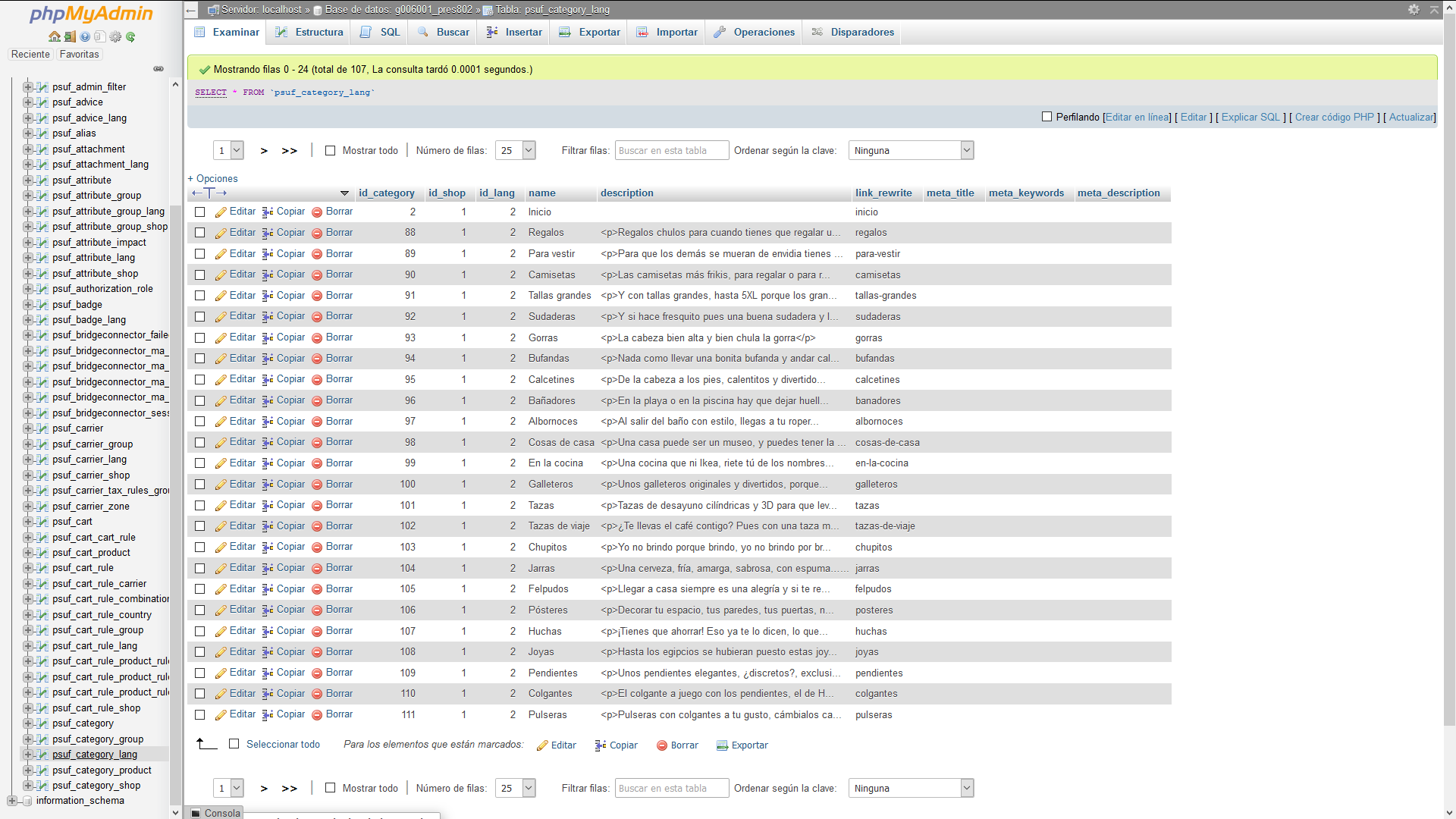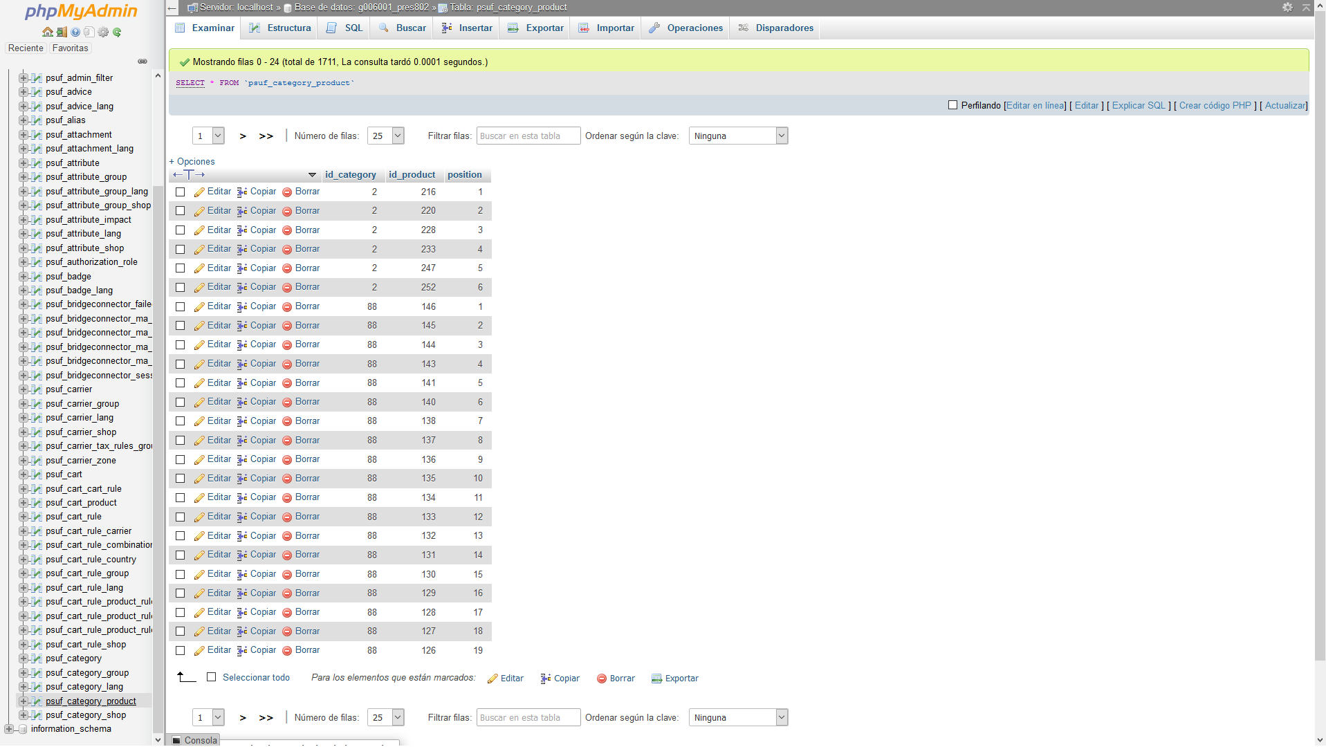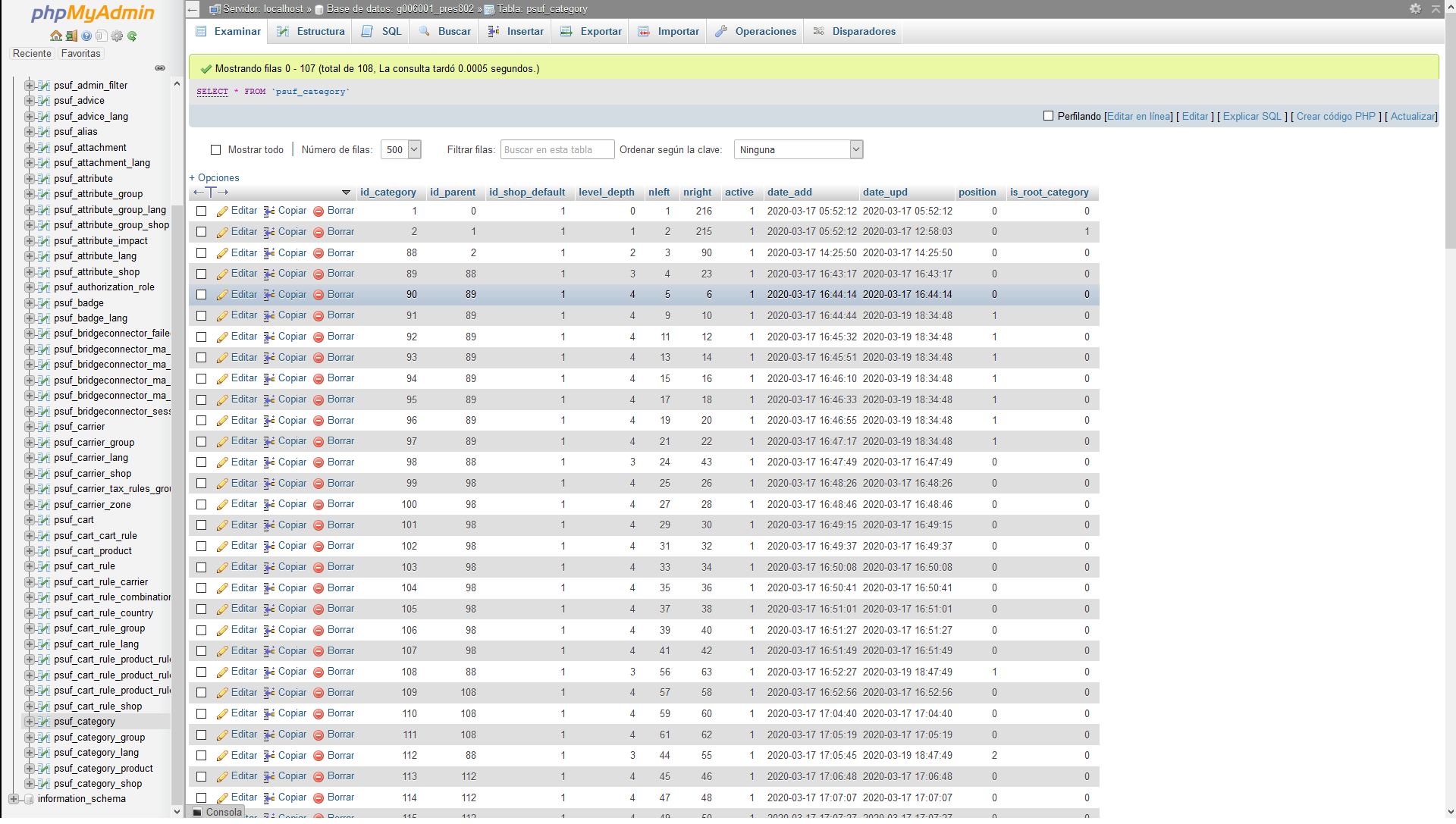 Wuaala Posted April 1, 2020 Author Share Posted April 1, 2020 La respuesta que me da es 400 bad request, con lo que el error es de la base de datos. He entrado en la base de datos y he grabado directamente la categoria en la tabla category_products y funciona, así que debe haber otra tabla por ahí que no tiene la relacion correcta pero no se cual puede ser. Link to comment Share on other sites More sharing options...