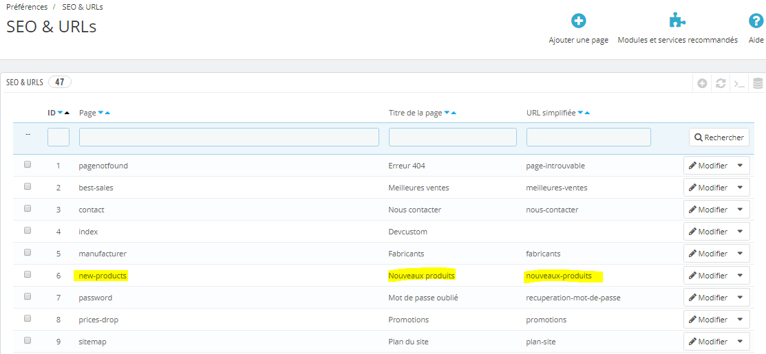 [email protected] Posted March 27, 2020 Author Share Posted March 27, 2020 Bonjour, Merci beaucoup pour votre réponse. J'aimerais créer une catégorie "nouveautés" appartement à la grande catégorie eshop. Je n'arrive pas à relier le lien nouveaux produits de la page "Seo et Url" à une catégorie. Savez-vous comment faire ? Ma page nouveaux produits de Seo et Url est la suivante : https://them.fr/fr/nouveaux-produits Lorsque j'inscris le même url dans la catégorie il est automatiquement modifié. Merci beaucoup Link to comment Share on other sites More sharing options...