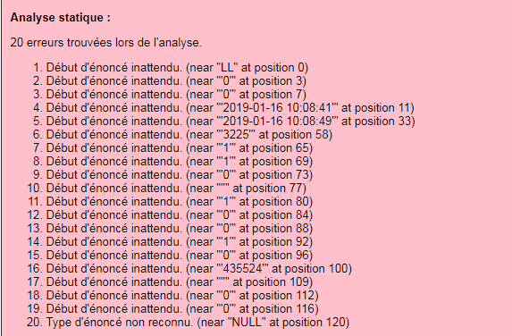 Lorenza Posted March 24, 2020 Share Posted March 24, 2020 Bonjour, Je rencontre un problème d'importation de ma BDD en local sous Xampp (Windows). Sous la dernière version de php, l'importation est réussie sans problème mais il y a des erreurs d'affichage, la boutique ne s'affiche correctement. Je suis donc passée à la version 5.6.40. J'ai changé la taille maximum du fichier d'upload dans php.ini, après le message "La limite de temps pour l'exécution du script a été atteinte", je recommence la procédure mais j'ai beaucoup d'erreurs notamment : #1064 - Erreur de syntaxe près de 'LL,'0','0','2019-01-16 10:08:41','2019-01-16 10:08:49'), ('3225','1','1','0','',' à la ligne 1 mais aussi des erreurs du type "Début d'énoncé inattendu" (voir image) Voici les versions que j'utilise pour ma boutique : Prestashop : 1.6.1.20 version php de l'hébergeur : 7.0 xampp version php : 5.6.40 version phpmyadmin : 4.8.5 Paramètres généraux de l'interclassement pour la connexion au serveur : utf8_general_ci J'ai téléchargé la BDD sous le back office de prestashop. J'ai regardé du côté des jeux de caractères pour essayer de comprendre le problème. Ma BDD créée est bien sous utf8_general_ci. Par avance, je vous remercie de votre aide. Link to comment Share on other sites More sharing options...