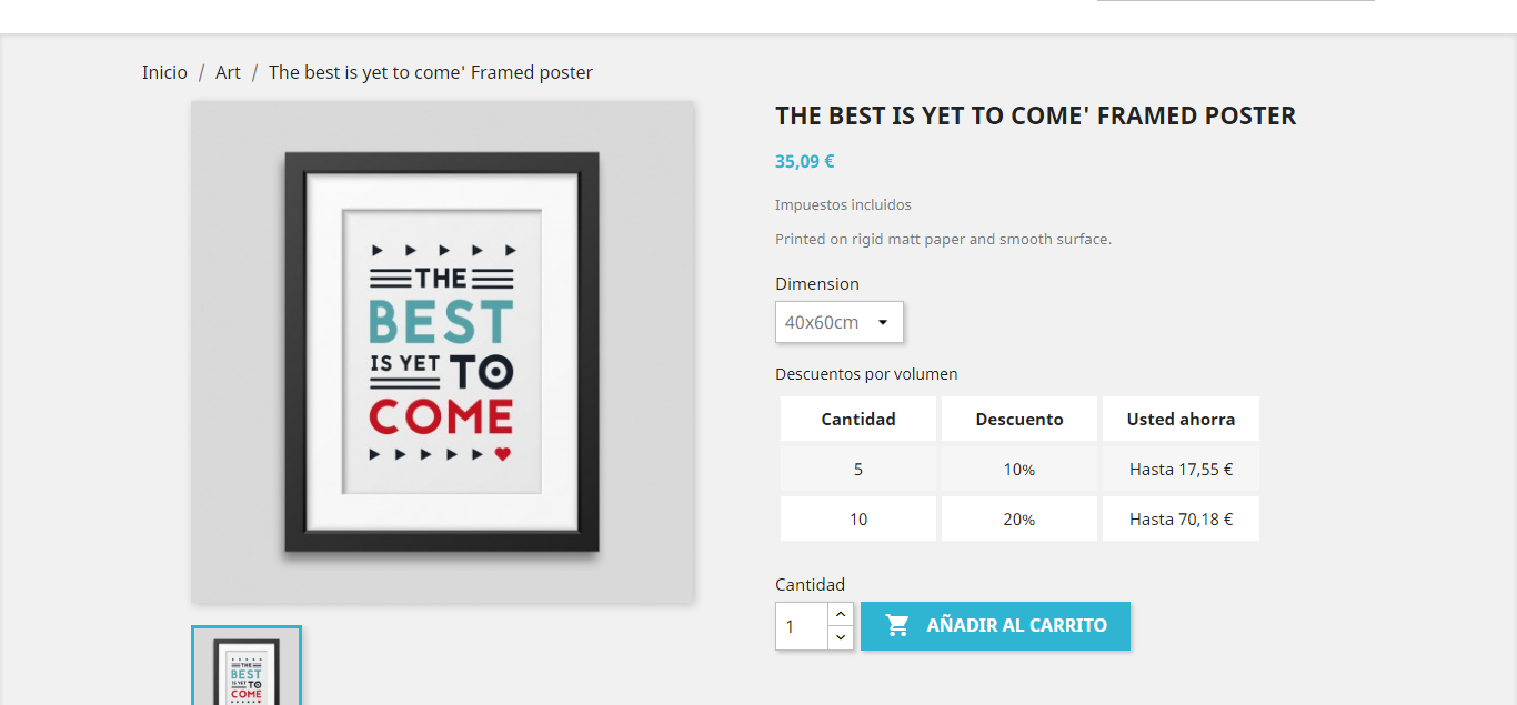 joseantgv Posted March 26, 2020 Share Posted March 26, 2020 Si defines precios específicos por cantidad, PS muestra una tabla con el descuento: 1 Link to comment Share on other sites More sharing options...