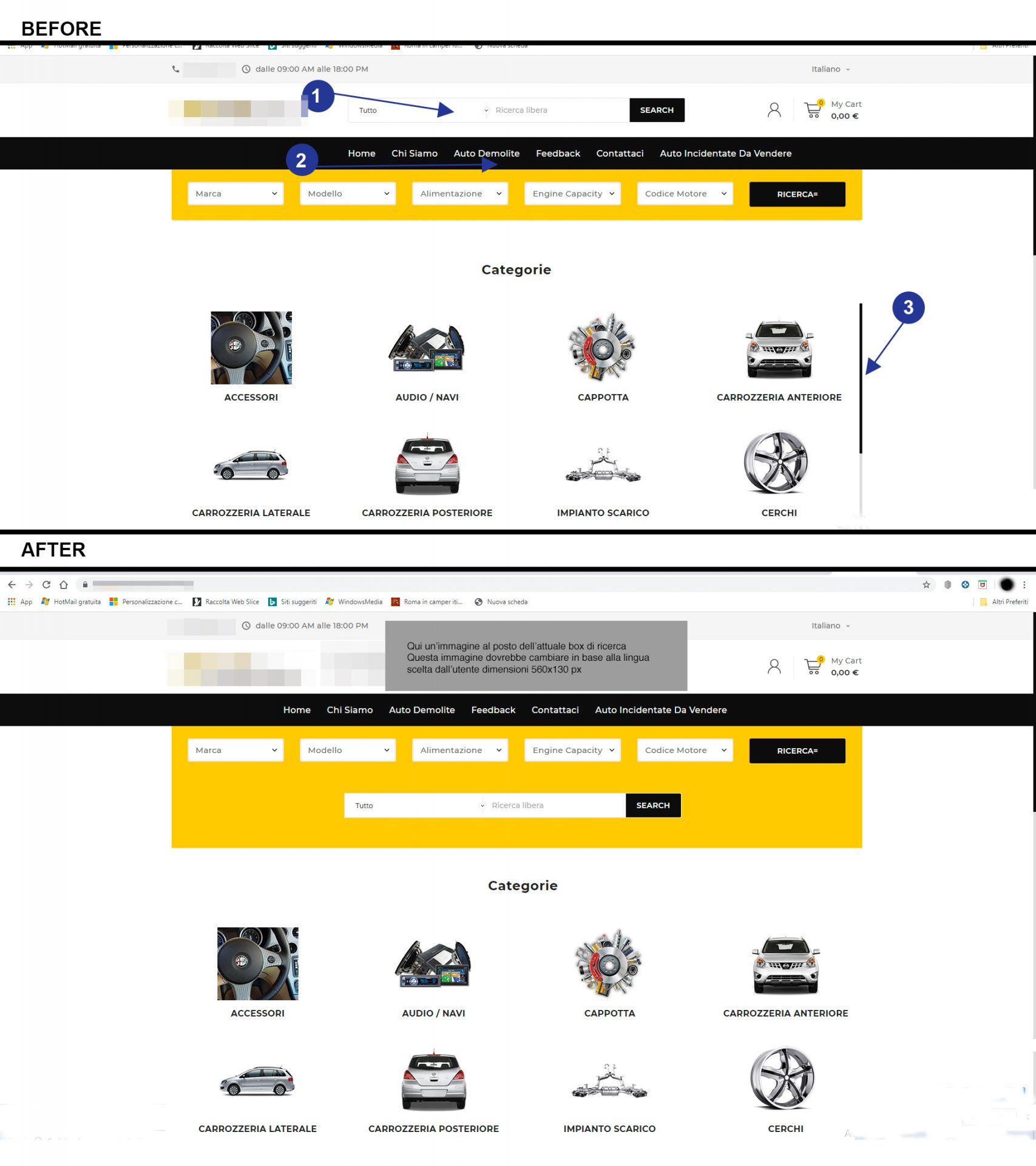 1) spostare il box di ricerca nella parte bassa e, al posto del box, inserire una immagine (questa immagine dovrebbe cambiare in base alla lingua scelta dall'utente)