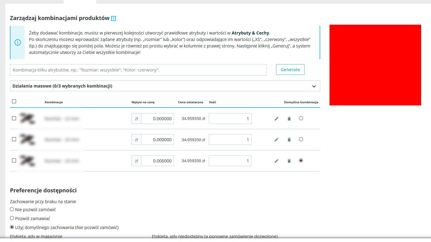 Witam, Zniknęła mi w sklepie tabela wyboru kombinacji w edycji produktu. Dodam że baza z multisklepu skrojona na 1 sklep. Wszystko działa tylko znieknęła mi ta tabela. Kombinacje w produktach istnieją i można je edytować przez inny moduł (Lista produktów). Kiedyś już to przywróciłem ale teraz nie mam ciężko mi to odnaleźć jaka tabela w bazie odpowiada za wyświetlenie tego pola z możliwymi kombinacjami .(zaznaczonego na dołączonym obrazku na czerwono)