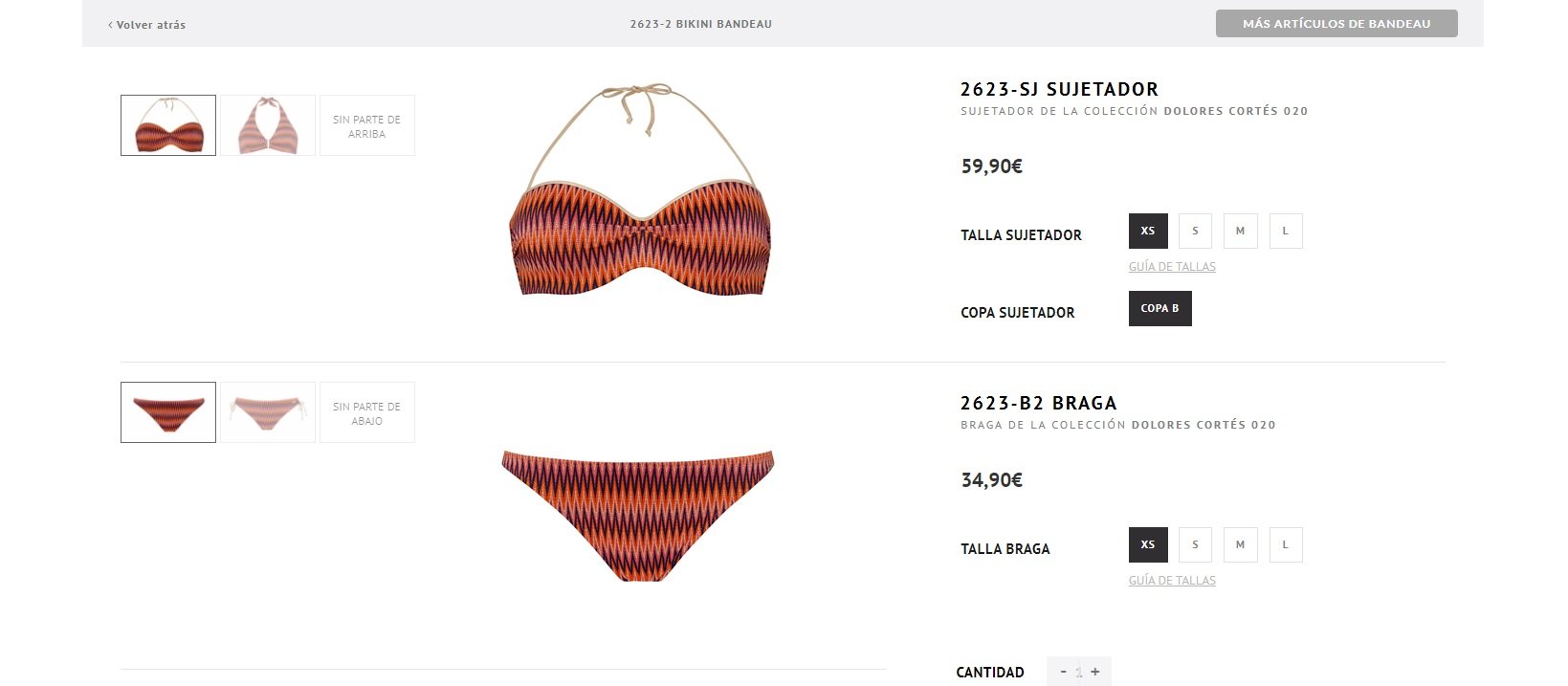 veronicacartagena Posted April 2, 2020 Share Posted April 2, 2020 Hola, hay algún módulo con el que poder vender en una misma página de producto los bikinis por partes, poder elegir la parte de, arriba de abajo o no elegir una de las dos? Tal y como se muestra en la imagen? he navegado por el codigo de esta página pero no he sido capaz de averiguarlo. Muchas gracias Link to comment Share on other sites More sharing options...