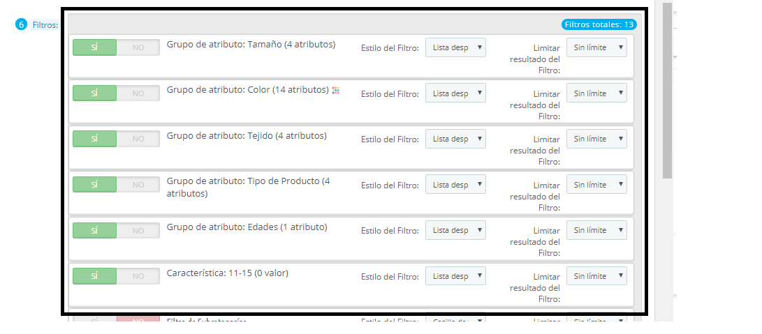 jcots87 Posted April 2, 2020 Share Posted April 2, 2020 Hola, He creado estos atributos para que aparezcan en las categorías como filtros, y quería saber si es posible que en la opción de Lista desplegable, no sea vea lo de " Sin Filtro" y aparezca atributo. Ya que no queda muy bien que salga de entrada " Sin filtro". Añado dos capturas para que lo veáis y a ver si es posible. Gracias Link to comment Share on other sites More sharing options...