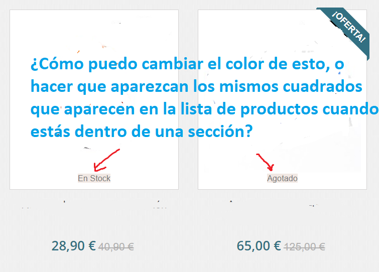Mery30 Posted April 17, 2020 Author Share Posted April 17, 2020 Ahora he conseguido no quitar peo sí hacer desaparecer la disponibilidad que llamo fea, añadiendo unas lineas debajo del todo del product_list.css ul.product_list.grid > li .product-container .product-image-container .product_img_link { background: #fff !important; color: #fff !important; } LO HE HECHO DE COLOR BLANCO QUE ES COMO TENGO LA CAJA. 1 Link to comment Share on other sites More sharing options...