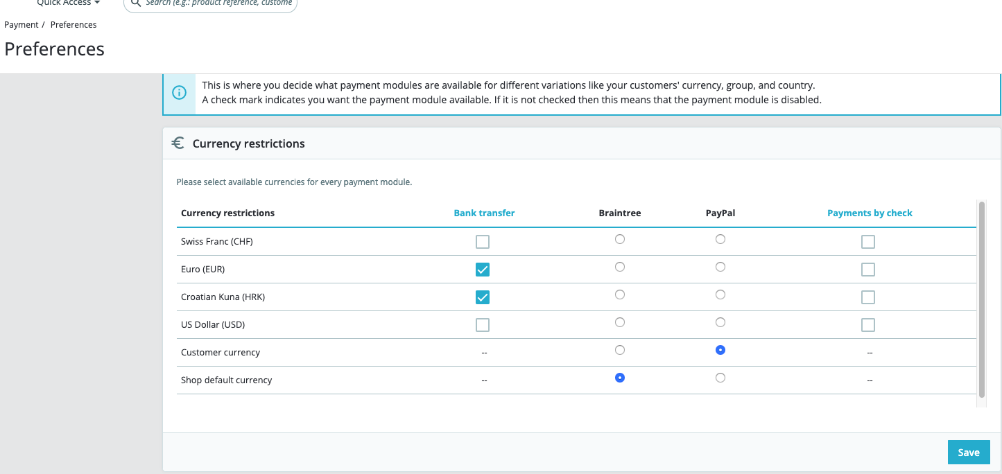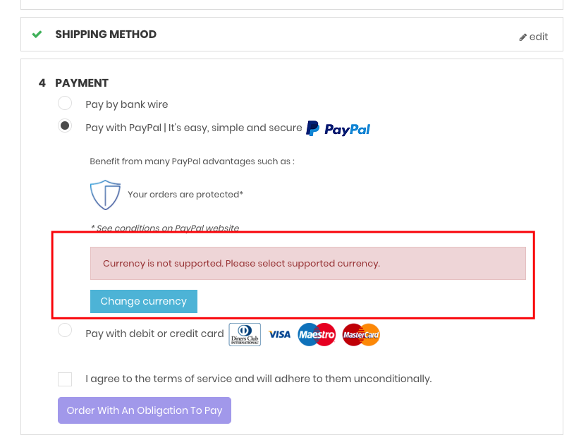 If customer have in checkout currency HRK and choice Paypal payment then will geht this message "Currency is not supported. Please select supported currency." - this is correct!