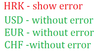If currency in checkout is HRK i want show message "Currency is not supported. Please select supported currency."