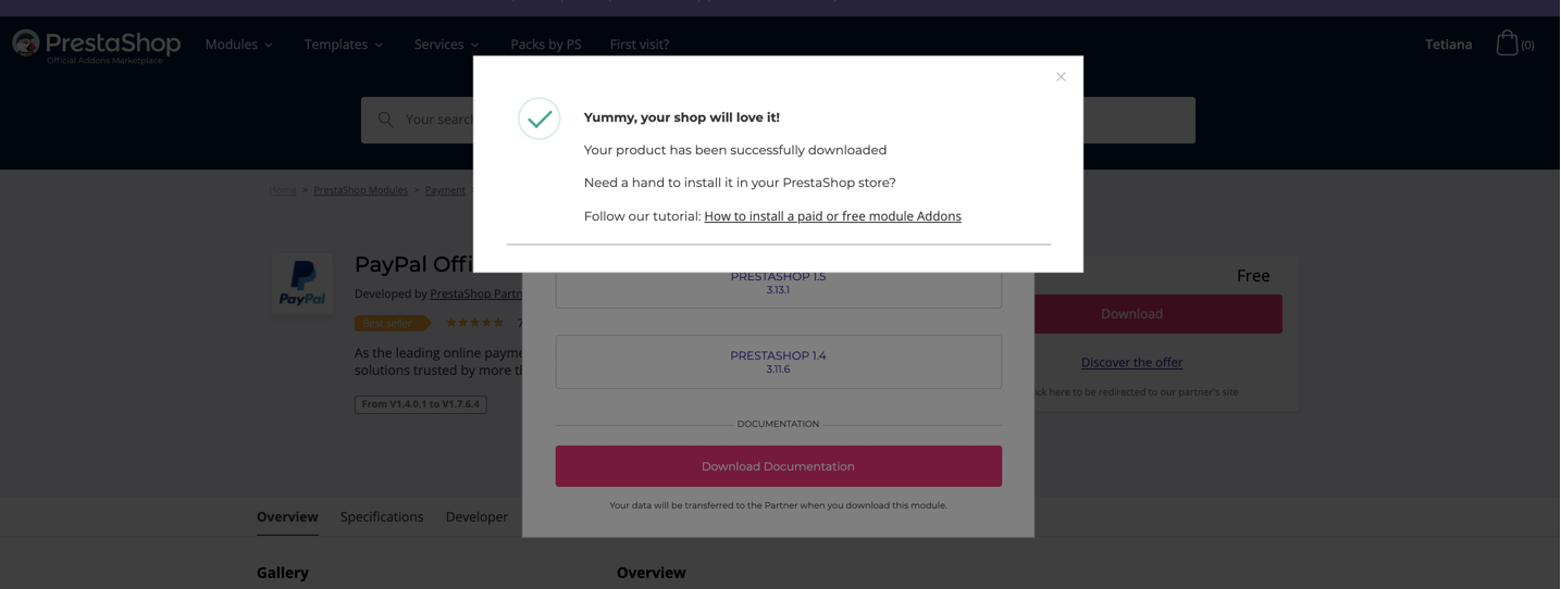 Coach EmRatThich Posted April 9, 2020 Share Posted April 9, 2020 I would like to download the Paypal addon (https://addons.prestashop.com/en/payment-card-wallet/1748-paypal-official.html). When I click download, and choose the version, then prestashop just say Quote "Fatal error (#U)" Can you verify it? Thank you very much Link to comment Share on other sites More sharing options...