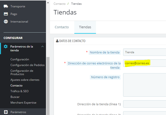 pakito pestashoper Posted April 15, 2020 Author Share Posted April 15, 2020 7 hours ago, idnovate.com said: Puedes cambiar la dirección en "Parámetros de la tienda -> Contacto -> Tiendas": perfecto ya lo solucione muchas gracias Link to comment Share on other sites More sharing options...