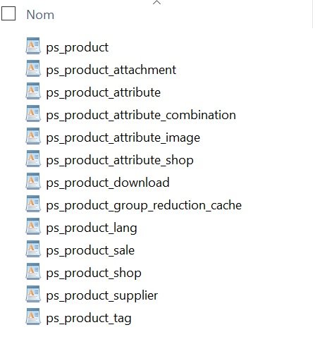 typhoon Posted April 17, 2020 Share Posted April 17, 2020 (edited) Je suis en train de faire une nouvelle boutique en 1.6.1.24. J'ai voulu récupérer mes données clients, commandes, produits d'une boutique 1.4.9 J'ai utilisé 1 click upgrade depuis la 1.4.9 et récupéré les tables qui m'intéressaient pour les ajouter sur mon nouveau site. J'ai un soucis avec les produits. J'ai une erreur 500 en back office si je clique sur "catalogue" ou "produits", les attributs, fournisseurs, catégories par contre fonctionnent et ont bien été importé. En front office aucun produit ne s'affiche Voici les tables produits que j'ai importé : Ai-je oublié quelque chose? Merci Edited April 18, 2020 by typhoon (see edit history) Link to comment Share on other sites More sharing options...