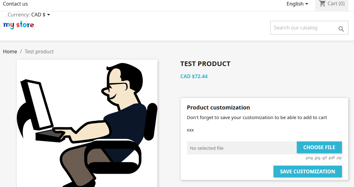 4. In the product detail, create a drop-down list with a selection of the country of delivery and the available carrier