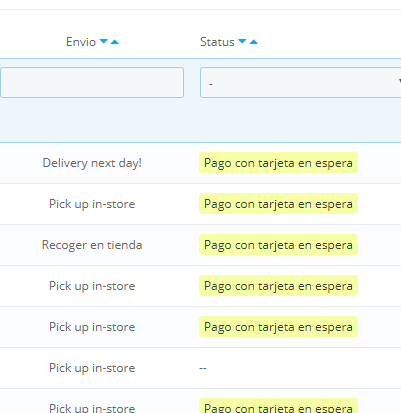 Daniel_96 Posted April 25, 2020 Share Posted April 25, 2020 Necesito incluir un color a mi transportista asi como se le agrega un color al Status del pedido: 'carrierdelay' => array( 'title' => $this->l('Envio'), 'type' => 'text', 'align' => 'text-center', 'class' => 'fixed-width-xl', 'filter_key' => 'carrier_lang!delay', 'filter_type' => 'text', 'order_key' => 'carrier_lang!delay' ), Si incluyo : 'color' => 'color', siempre obtengo el color del status de la orden, pero yo solo quier definir un color a mi transportista. Link to comment Share on other sites More sharing options...