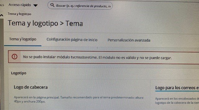 "No se pudo instalar módulo tvcmsstoretime. El módulo no es válido y no se puede cargar."