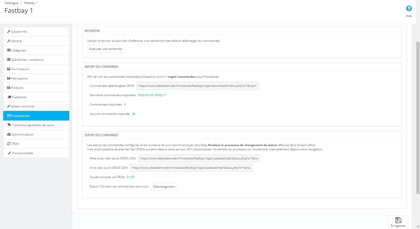DDM Posted April 29, 2020 Share Posted April 29, 2020 Bonjour, J'ai installé Fastbay tout fonctionne bien sauf que les commandes ne sont pas synchronisées. Je suis obligé d'aller gérer les commande sur Ebay. Lorsque je consulte l'onglet de fastbay en back office je vois que les demande de sychro se fait mais que cela ne fonctionne pas (voir capture d'écran jointe) Si j'appelle la tache CRON en manuelle j'ai un message d'erreur qui est le suivant : {"status":0,"pages":1,"imported":[],"errors":{"14589":-2,"14588":-4,"14592":-4,"14594":-2,"14599":-4,"14600":-4,"14595":-4,"14591":-4,"14590":-4,"14603":-4,"14604":-4,"14605":-4,"14611":-4,"14607":-4,"14612":-4,"14608":-4,"14610":-4,"14613":-4,"14614":-4,"14615":-4,"14616":-2,"14606":-4,"14609":-4,"14593":-4,"14602":-4,"14601":-4},"time":0.021565914154053,"discarded_output":""} Si quelqu'un peux m'aider ça serait super. Je ne m'en été pas rendu compte de suite et maintenant l'assistance de 3 mois auprès du concepteur et fini donc je compte beaucoup sur le forum Version de PrestaShop 1.6.1.18 Link to comment Share on other sites More sharing options...