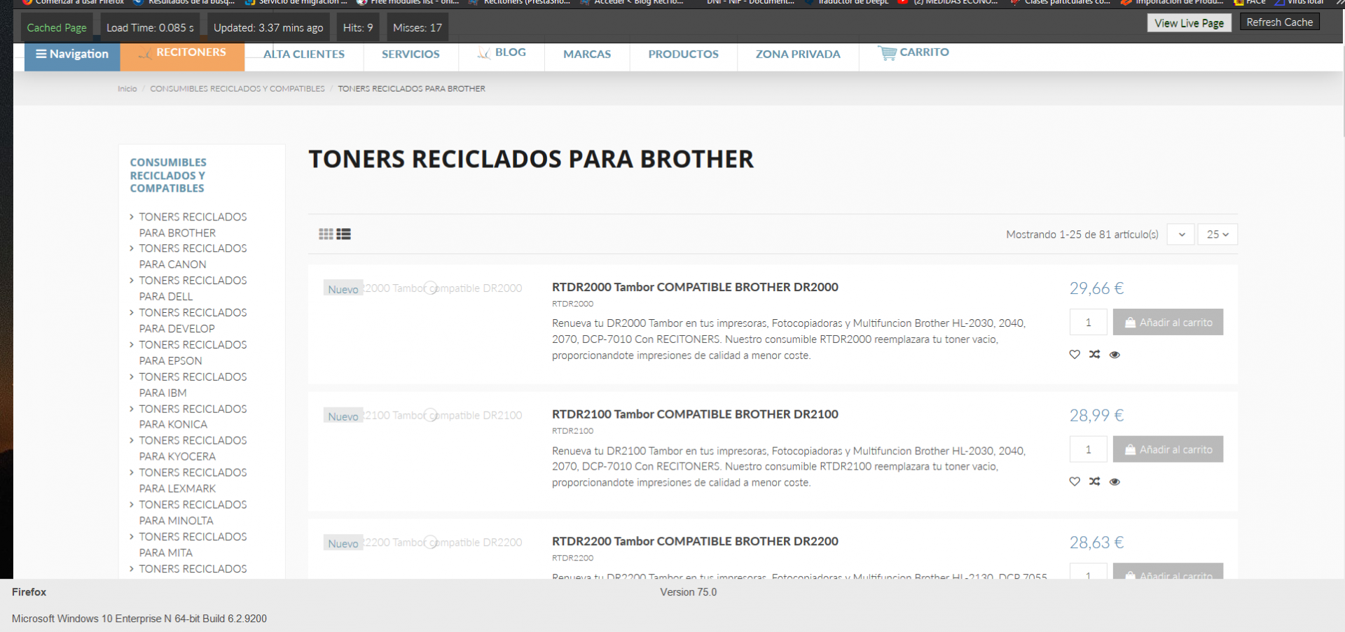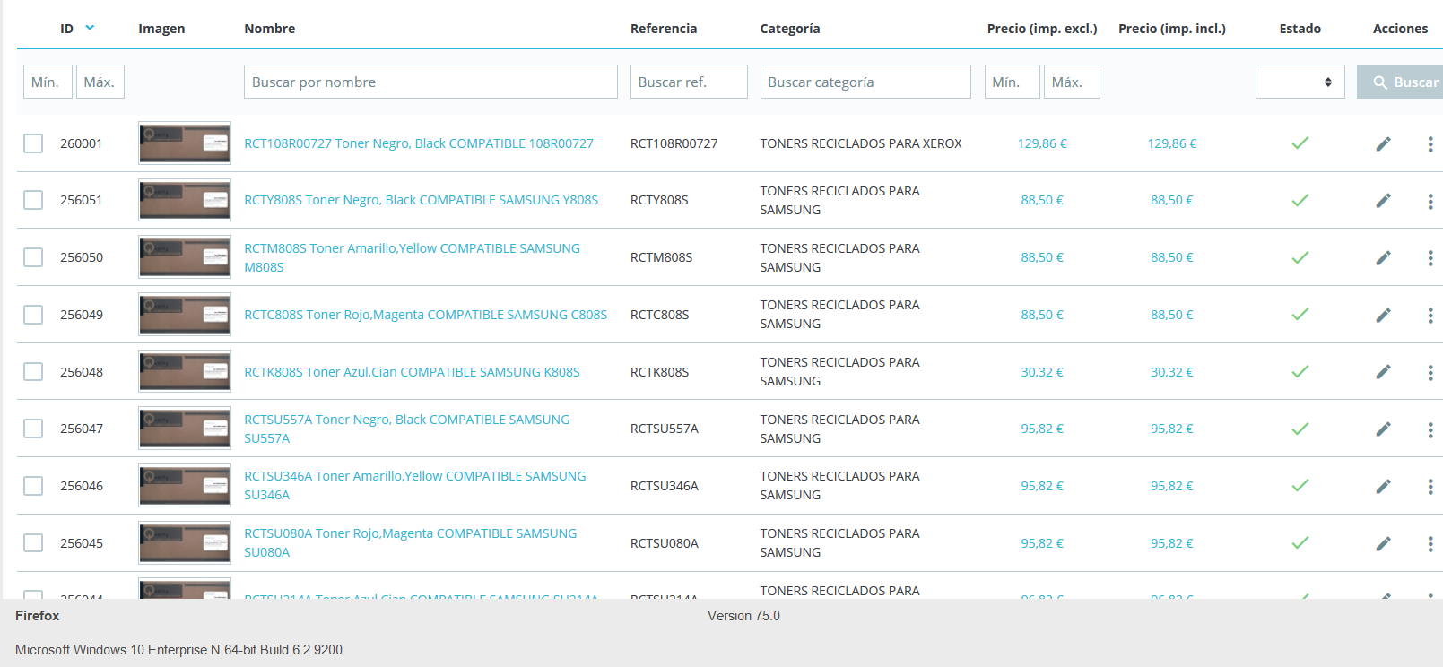 Itoiz Posted May 3, 2020 Author Share Posted May 3, 2020 BUENAS NOCHES Buenos dias Juanjo Te envio unos datos por si nos pueden servir de algo ACABO DE IMPORTAR 500 PRODUCTOS HE ELIMINADO TODOS EN LA VISTA DE PRODUCTOS SE VE ESTO PERO SI MIRAS EN EL LISTADO DE UN FABRICANTE DESAPARECEN Y SI PULSAS EN EL PRODUCTO TAMBIEN DESAPARECE https://recitoners.net/toners-reciclados-para-brother/239001-rtdr2000-tambor-compatible-brother-dr2000.html en el servidor se han creado estos fich y la estructura es rara hay uno dentro de otro de otro de otro pero no tiene ficheros Espro k si tienes algun rato y le puedes echar un vistazo te ayude de algo para descurbrir el problema pq yo estoy perdido k tengas un buen dia un saludo Link to comment Share on other sites More sharing options...