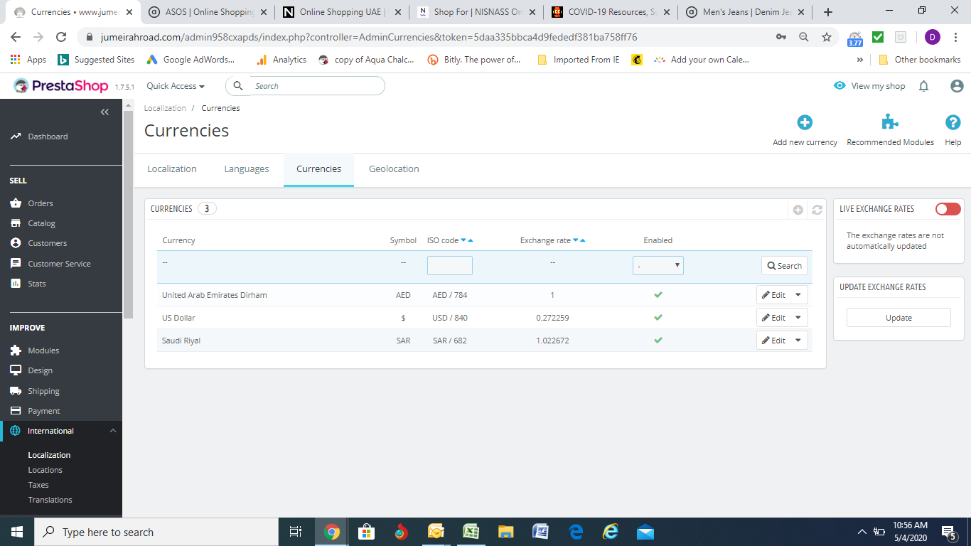 deepikaraj Posted May 4, 2020 Author Share Posted May 4, 2020 Hello there, Yes they are and on the front end the drop down shows these currencies but when one checksout on the non default currency the only payment option that comes is that of Cash on Delivery and not the credit card - Jumeirahroad Mastercard module. Screenshots below. I dont intend to offer Cash on delivery outside of UAE and will remove the option but this is just to show. Link to comment Share on other sites More sharing options...