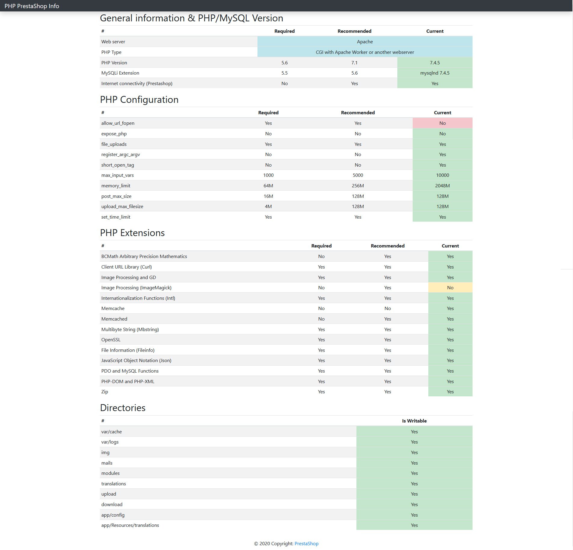 JBW Posted May 11, 2020 Share Posted May 11, 2020 You are running PHP 7.4 -> Prestashop is only compatible until PHP 7.2. - you need to downgrade and allow fopen (php.ini setting or in your webhosting panel or ask your webhoster) Link to comment Share on other sites More sharing options...