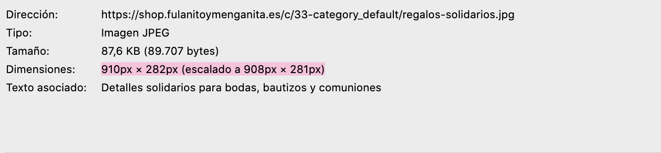claudiaquitpillo Posted May 6, 2020 Share Posted May 6, 2020 (edited) Hola a todos! estoy actualizando mi tienda online, y la estoy creando en un nuevo subdominio en versión 1.7.6. He creado las imágenes de cabecera de las categorías al tamaño que indica en la configuración de imagen pero cuando las subo se ven pixeladas. He intentado averiguar qué sucede y la verdad es que no entiendo por qué si la imagen es de 910x282 y yo la creo y la subo a ese tamaño, prestashop la cambia y le resta un pixel por cada lado, haciendo que pierda calidad. Os adjunto pantallazos para que veáis lo que digo y la imagen original para que veáis la diferencia. La verdad es que me estoy volviendo loca, espero que me podáis ayudar, porque queda fatal, y es una tienda online en la que vendo cosas con diseños personalizados, queda fatal que se vean mal las imágenes Gracias!!! Edited May 6, 2020 by claudiaquitpillo se habían cargado más imagenes de la cuenta (see edit history) Link to comment Share on other sites More sharing options...