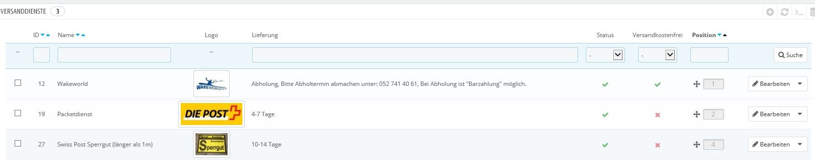 boatshop Posted May 9, 2020 Share Posted May 9, 2020 (edited) Hallo Ich kann einen Versanddienst nicht bearbeiten! Ich habe 3 Versandarten erstellt, Presta 1.6.1.6. -Abholen im Shop: Gratis -Postversand (Pakete bis 1m Länge) -Sperrgut: Pakete über 1m Länge (ist teurer in CH also + 15.00 CHF) Die Kunden können aber eine 4. Versandart wählen -Sperrgut Gratis Nun wählen natürlich alle Kunden diesen Gratisdienst. Ich kann den 4 Versanddienst nirgends finden, nicht bearbeiten. Hier ein Bild: Einmal meine gespeicherten Versanddienste. Einmal die Versanddienste, die der Kunde auswählen kann. Wo kommt dieser 4. Versanddienst her? Ist der vielleicht bei einem Produkt drin? Ich suche schon lange Kann jemand helfen, wie ich den Finde???? Vielen Dank Roli Edited May 9, 2020 by boatshop Bilder falsch dargestellt (see edit history) Link to comment Share on other sites More sharing options...