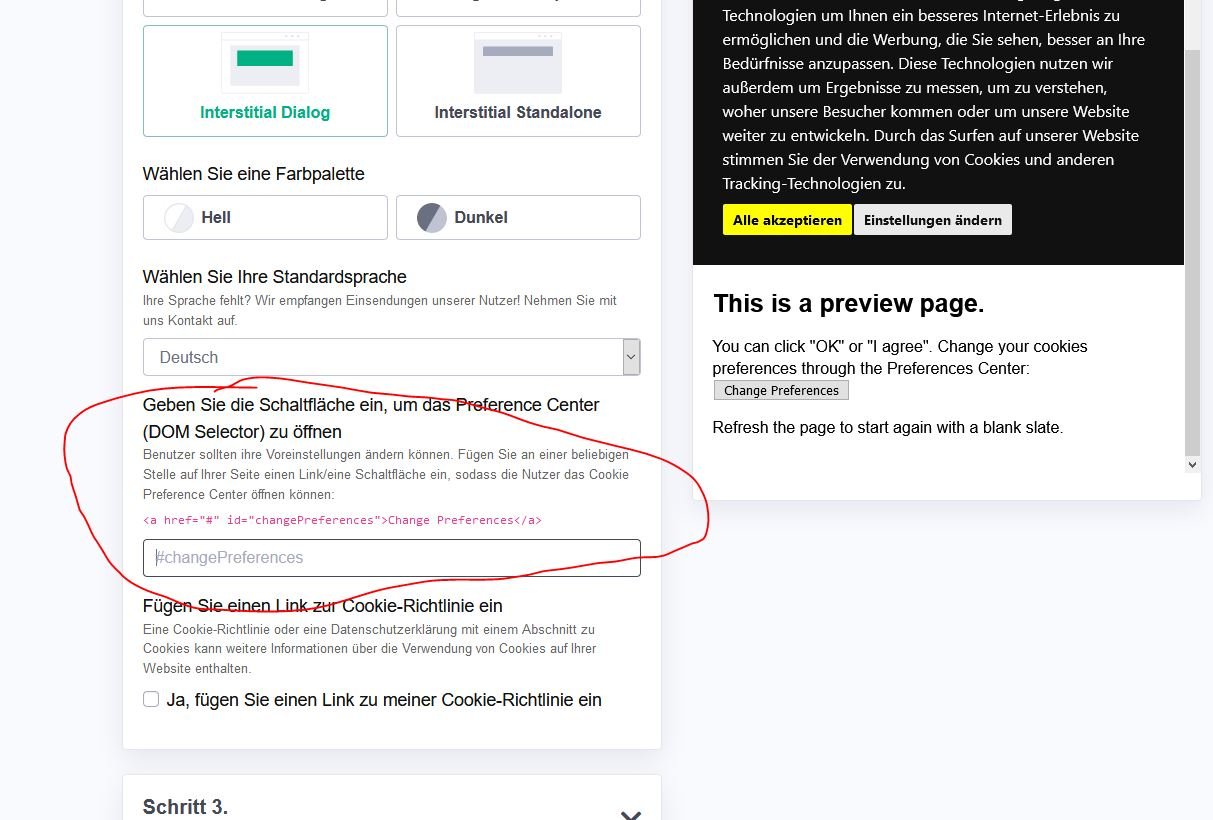 Mietzshop Posted May 12, 2020 Share Posted May 12, 2020 (edited) Hallo zusammen, ich bin grade dabei eine neue Seite anzulegen: Cookie-Einstellungen. Hier möchte ich gerne, dass der Benutzer auch im Nachhinein die Einstellungen noch ändern kann. Das hat bei meinem bisherigen Anbieter (Jimod) wunderbar geklappt, allerdings automatisch - also ohne dass ich diese Seite anlegen musste. https://mietzshop.jimdofree.com/j/cookies/settings Wenn ich jetzt allerdings versuche dies selbst anzulegen kommt folgende Fehlermeldung: Quote Ein unerwarteter Fehler ist aufgetreten. [PrestaShop\PrestaShop\Core\Domain\CmsPage\Exception\CmsPageException Code 0] Ich weiß, dass dies an den Checkboxen liegt...an dem Punkt komme ich aber leider nicht weiter. Gibt es also eine Möglichkeit, dass der Benutzer auch im Nachhinein noch seine getroffenen Einstellungen ändern kann? Liebe Grüße Edited May 13, 2020 by Mietzshop (see edit history) Link to comment Share on other sites More sharing options...
