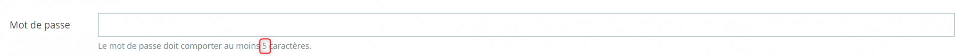 Pioupial Posted May 13, 2020 Author Share Posted May 13, 2020 Merci pour lien qui m'aide à comprendre le fonctionnement. Mais je n'arrive pas à trouver comment modifier ce nombre dans la partie Admin - Client. Car j'ai changé le mot de passe et il doit être de 8 caractères. Link to comment Share on other sites More sharing options...