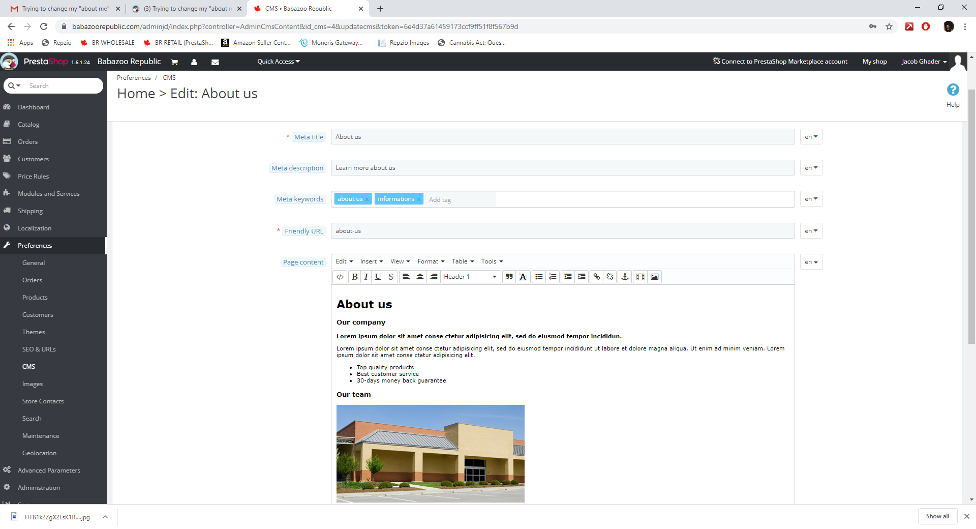Trying to change my "about me" on my website