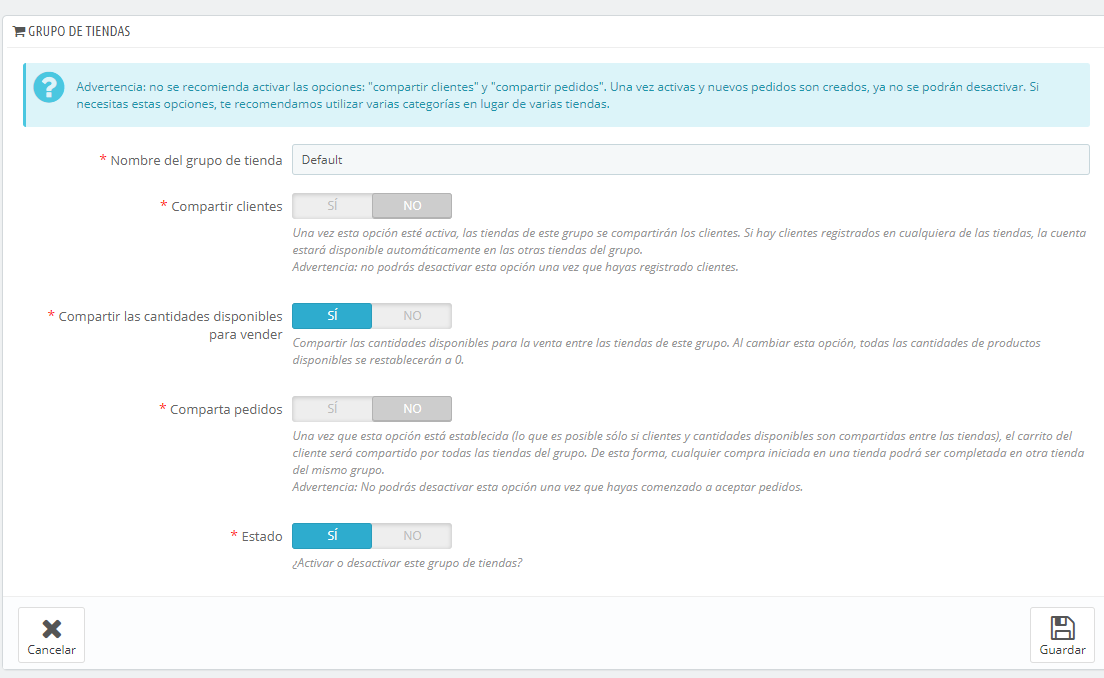 Pack_12 Posted May 19, 2020 Author Share Posted May 19, 2020 (edited) Estoy probando con la multitienda, que en teoría si creo una para medicamentos y le doy su propia URL y cambio todas las categorías y productos que dependen de medicamentos a esta tienda nueva, debería funcionar. En cambio veo que la multitenda obliga a un carrito para cada tienda, y no quiero eso... Tienen que ser la misma tienda pero con subdominio de medicamentos independiente... 🥵 Necesito algo de orientación... 😞 ADVERTENCIA DEL PROPIO PRESTASHOP: Advertencia: no se recomienda activar las opciones: "compartir clientes" y "compartir pedidos". Una vez activas y nuevos pedidos son creados, ya no se podrán desactivar. Si necesitas estas opciones, te recomendamos utilizar varias categorías en lugar de varias tiendas. de hecho, tampoco me deja en el grupo de tiendas activar la opción de compartir pedidos, carrito y demás. Con lo cual esta opción tampoco la veo... Edited May 19, 2020 by Pack_12 (see edit history) Link to comment Share on other sites More sharing options...