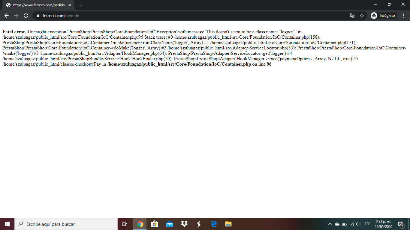 szuluagaz Posted May 20, 2020 Share Posted May 20, 2020 Buen día, Tengo un error en mi tienda de Prestashop, cuando el cliente da click en Procesar Pedido dentro del carrito sale lo siguiente: Esto empezó a aparecer desde hace 2 días que hice la migración de un servidor compartido a un servidor dedicado. La tienda es www.ferreco.com Me podrían asesorar sobre qué puedo hacer? Gracias por la ayuda Link to comment Share on other sites More sharing options...