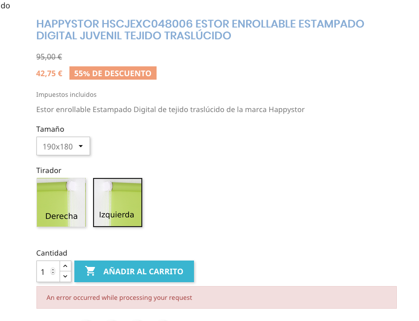jordicastalla Posted May 20, 2020 Share Posted May 20, 2020 Buenos días a todos/as! Tengo un pequeño problema con mi web. Nos sale un error después de la actualización de Prestashop 1.7.1 a la última versión. Lo podéis ver vosotros mismos al escojer una de las medidas del producto: https://elhogardetusuenos.com/es/inicio/1640-28578-happystor-hscjexc048006-estor-enrollable-estampado-digital-juvenil-tejido-traslucido.html#/26-tamano-80x180/353-tirador-izquierda No sabemos muy bien que hacer... he puesto modo debug y nada. Estamos desolados con la cantidad de problemas que dan las actualizaciones en Prestashop... Como tenemos una base de datos de 20GB y una web de otros tantos, no hemos podido hacer bakcup. Link to comment Share on other sites More sharing options...