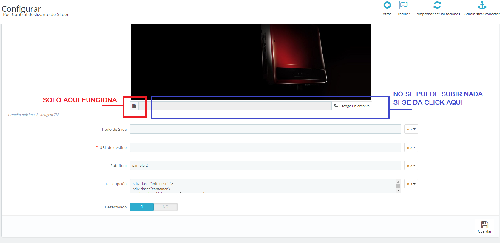 La segunda no funciona el área para subir imagenes solo una área pequeña como si se hubiera recorrido (anexo la imagen)