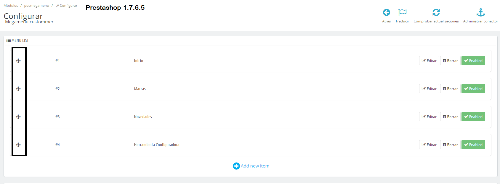 El caso es que hay ciertas áreas que no funcionan, en una de ellas existen unas "Cruces" para mover las categorias de lugar y no funcionan (anexo imagen).