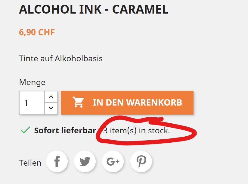 Und ich habe in der Übersetzung gefühlt jedes Position und jedes Wort an jeder noch so unmöglichen Stelle gesucht. Ich habe gesucht nach genauso wie es im Shop steht: item(s) in stock