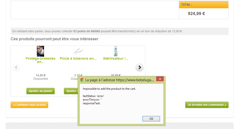 Impossbile d'ajouter les produits de cross selling selectionner dans la popup de recapitulatif de modal cart.