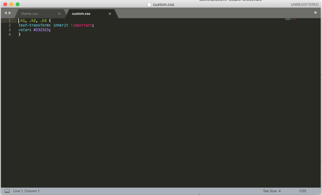 He modificado tanto el theme.css coo el custom.css y me sigue apareciendo la primera letra en mayuscula, debe de ser que hay algun fichero mas que se llama theme.css en algun directorio donde tambien habra que cambiarlo...pero no lo encuentro. He visto un theme.js que si aparece la palabra "uppcarse" pero no se si en ese fichero tambien hay que cambiarlo o no.