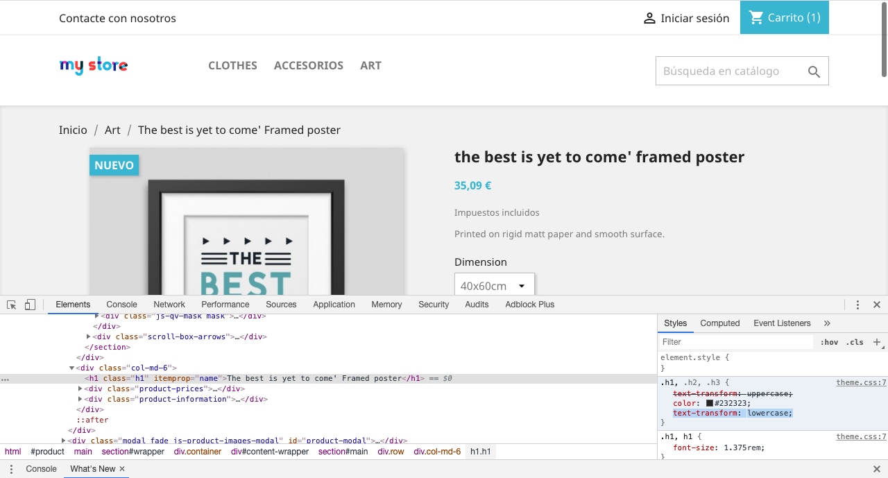 Uso prestashop 1.7.6.0 con el tema clásico y tanto en el título del producto como en la categoría la primera letra aparece en mayúscula y quiero que solo evite en mayúscula la letra que yo quiera, no la que me obliga prestashop.