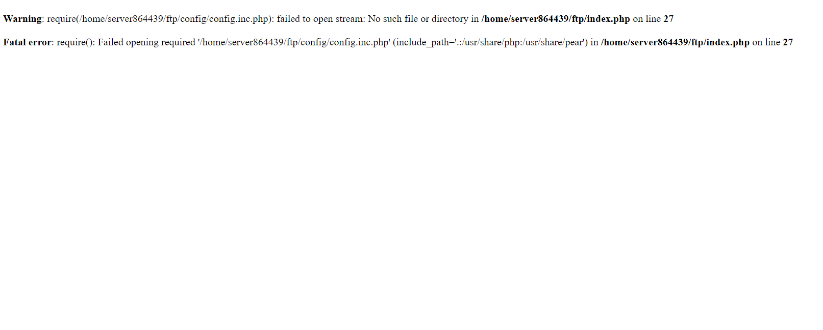 nekk123 Posted June 2, 2020 Share Posted June 2, 2020 Dzień dobry, zmieniłem dziś na swojej stronie plik custom.css (przez ftp, robiłem już to wielokrotnie) i po odswieżeniu strony zobaczyłem następtujący error: Warning: require(/home/server864439/ftp/config/config.inc.php): failed to open stream: No such file or directory in /home/server864439/ftp/index.php on line 27 Fatal error: require(): Failed opening required '/home/server864439/ftp/config/config.inc.php' (include_path='.:/usr/share/php:/usr/share/pear') in /home/server864439/ftp/index.php on line 27 Proszę o pomoc Link to comment Share on other sites More sharing options...